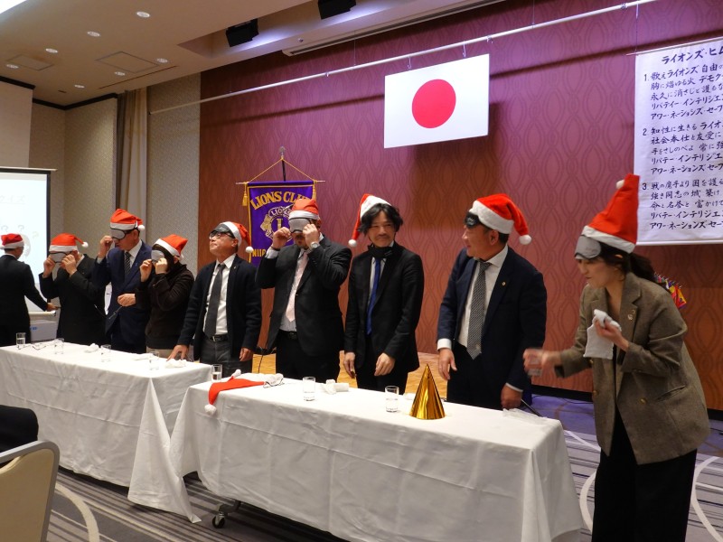 忘年クリスマス例会を行いました。例会後の懇親会ではテーブル対抗ゲームなどで親睦を深め