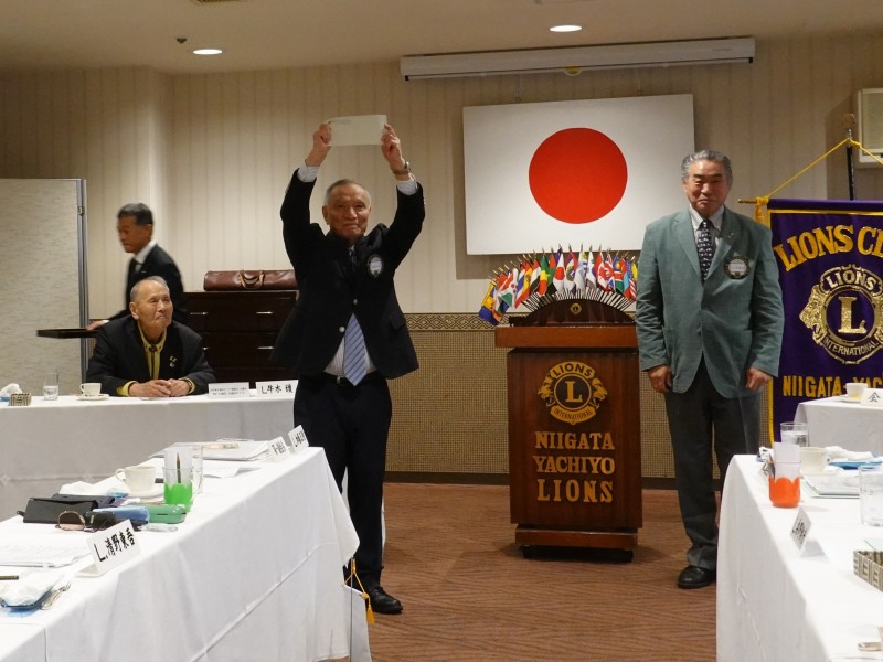 LCIF国際会長サポーターピンをL牛木 護、L清野東吾、L渡邊常仁に贈呈しました。